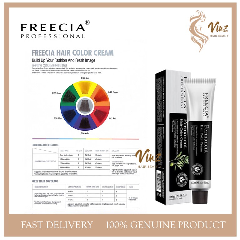 FREECIA Professional Hair Dye Color Cream with Oxidant 100ml + 100ml