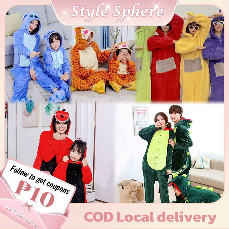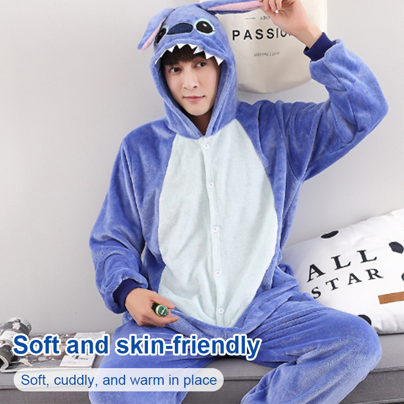 Kigurumi Dinosaur Stitch Tiger Cartoon Flannel Pajamas Women Men Family Sleepwear Onesies Animal