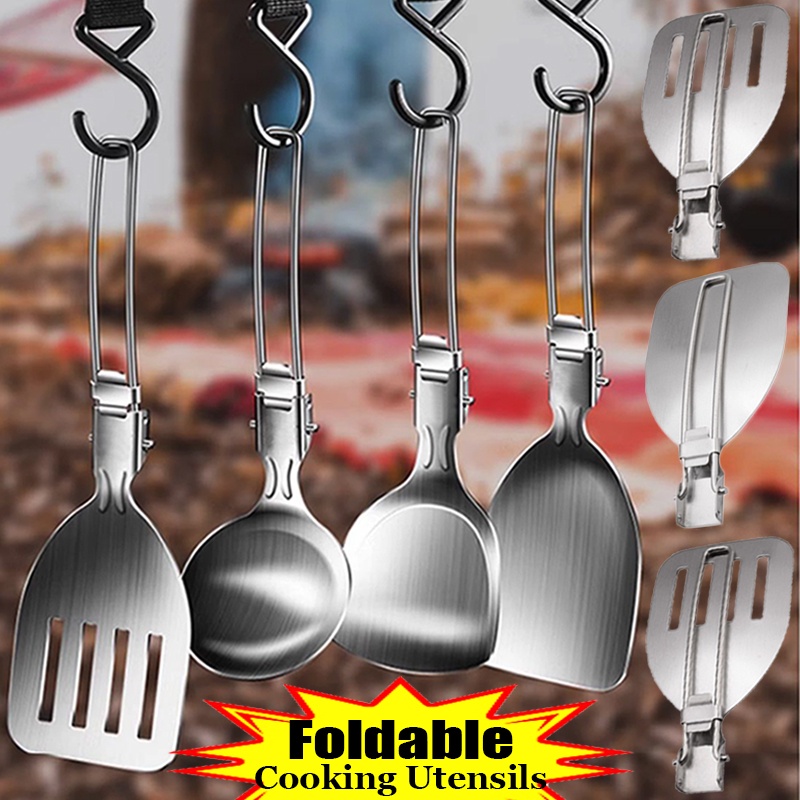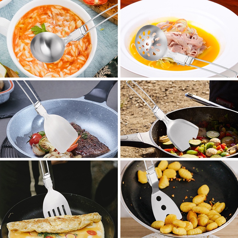 Multifunction Stainless Steel Folding Spatula Ladle Food Turner / Slotted Spoon Strainer Colander / Portable Outdoor Camping Gadgets / Kitchen Cooking Supplies Accessories