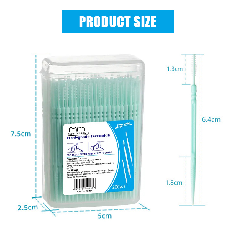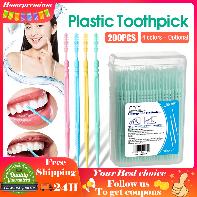200Pcs/Box Double Head Tooth Floss Disposable Plastic Interdental Toothpick for Hotel/Dining/Home