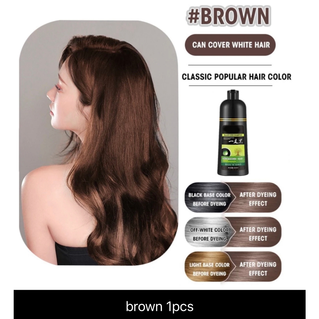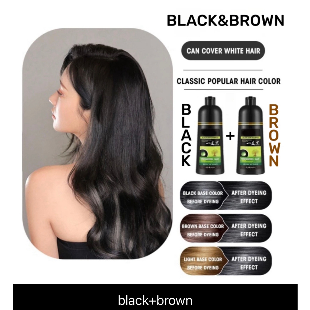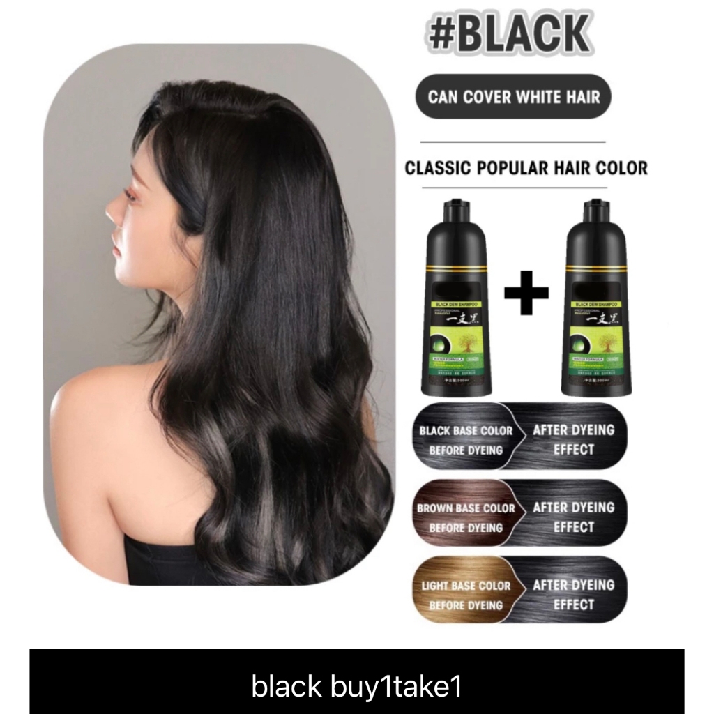 Buy 1 Take 1 500ml Herbal Hair Dye Shampoo Permanently Colors Hair Black/Brown Gentle & Non-Irritati