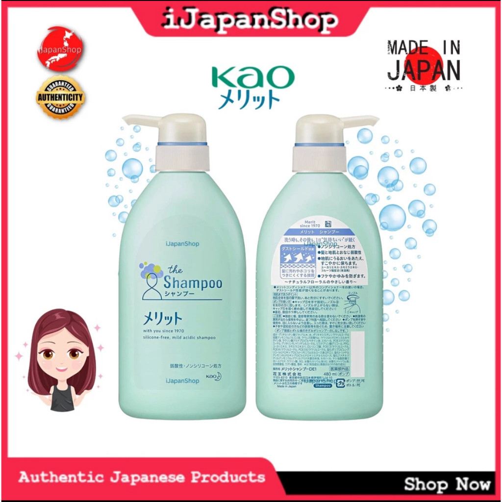 Kao Merit Mild Shampoo/Conditioner with Pump 480ml for Sensitive Scalp Dandruff Lightweight