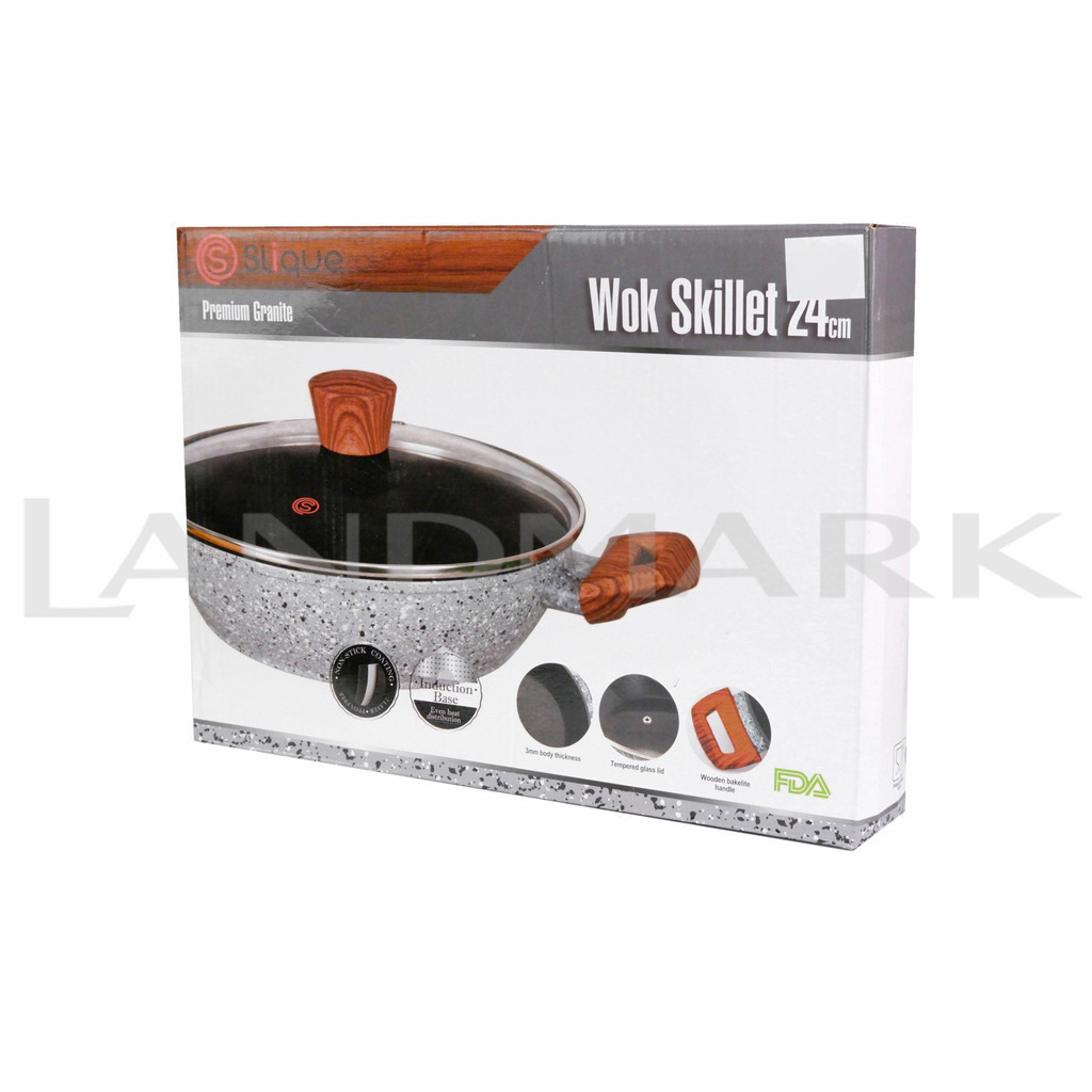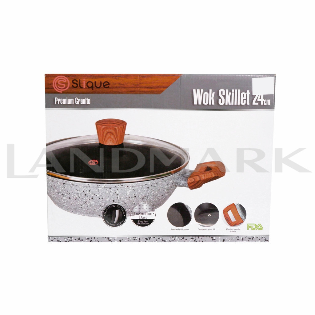 Slique Premium Granite Wok Skillet 24cm with Lid in a Box