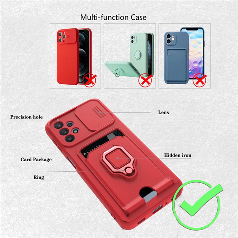 Slot Card Cover for Samsung A56 A55 A54 A26 A16 A36 A06 5G 4G S24 Fe Camera Lens Protect Slide Window Shockproof Armor Card Pocket Holder Case
