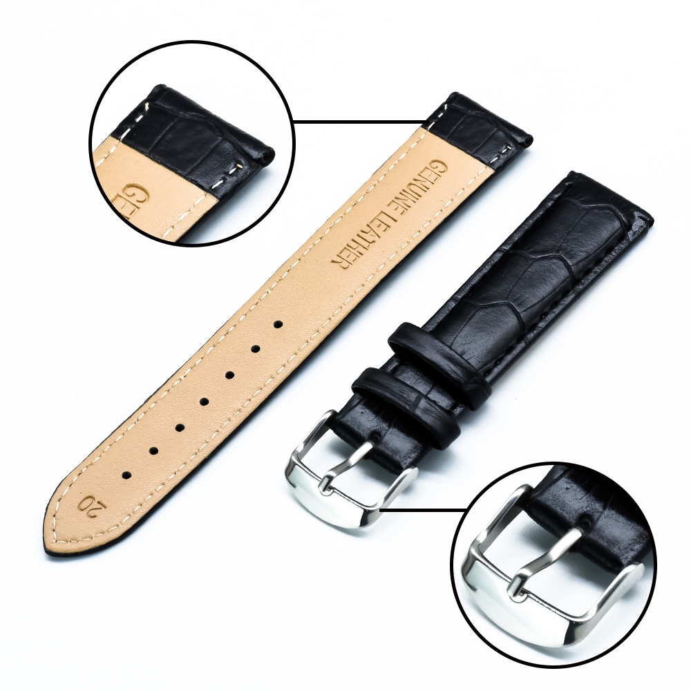 Slub Pattern Watch Strap Genuine Leather Watchbands Watch Strap Replacements Men Women Watch Strap Leather Watch Accessories 18mm 20mm 22mm Ready Stock
