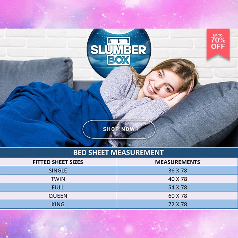 Slumber Box 3in1 Beddings Bed Sheet Home Bedsheet Set (2 Pillowcase + 1 Fitted Sheet) Printed DF127