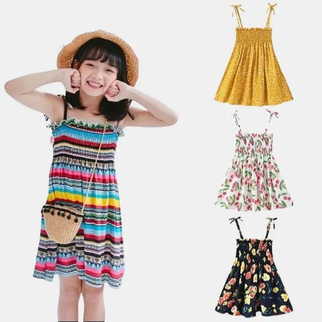 Smocking Dress Wide Daster for Kids Toddler 2-4yrs Princess Smack Style Animal Graphic Floral Design