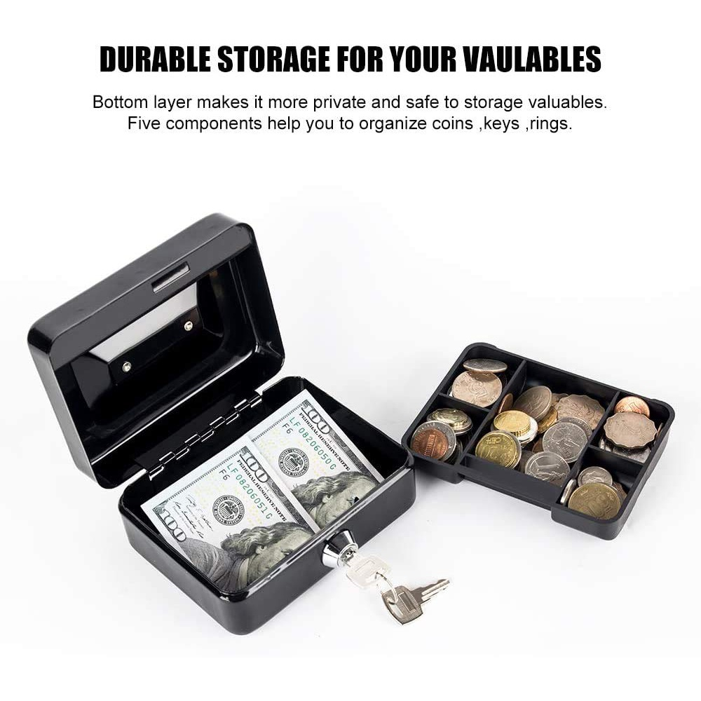 Small Cash Coin Money Storage Safe MetalCash Tray With Key Money Box
