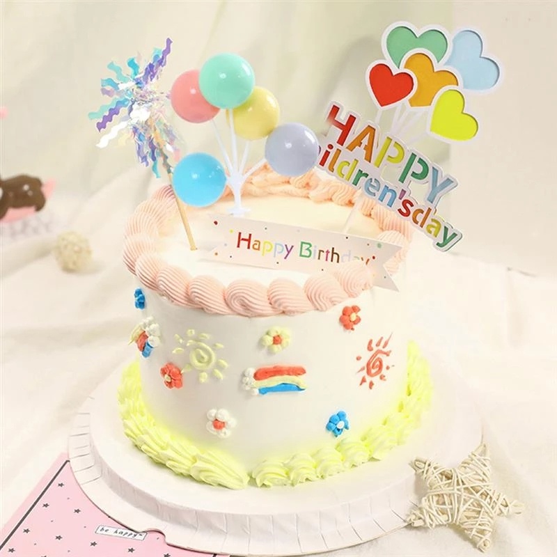 Small Fresh Cake Topper Kid Party Decoration Pink Plastic Balloon Decoration