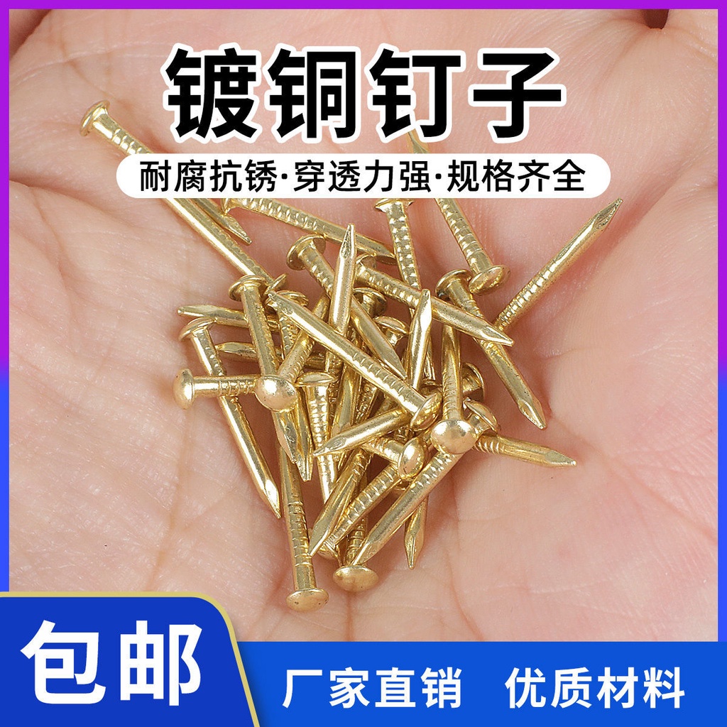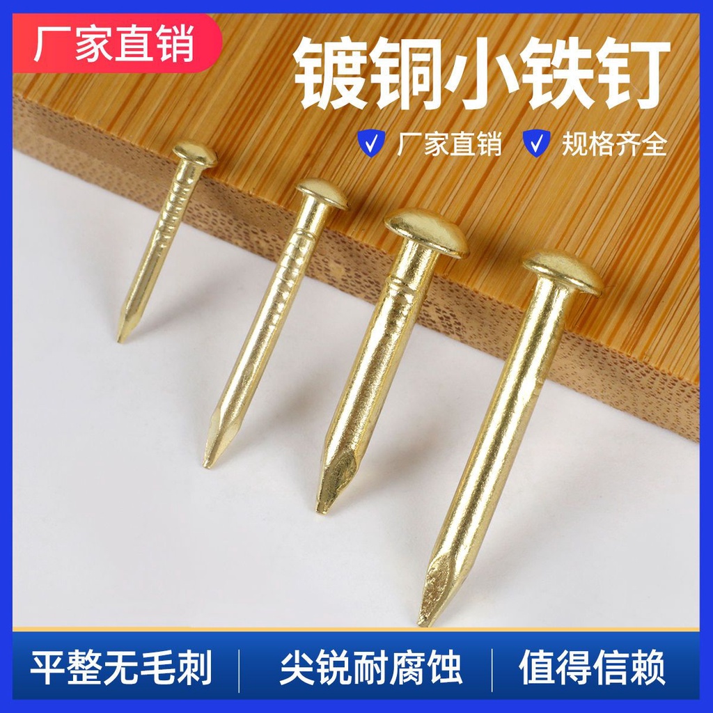 Small Iron Nails 50g 500g Copper-Plated Round Head Nails Wooden Box Nails Antique Iron Nails DIY Winding Drawing Special Round Iron Nails