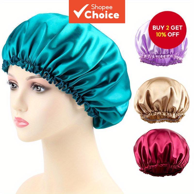 Small Lace Satin Beauty Round Cap Ladies Satin Shower Cap Solid Color Hair Care Cap Household Kitchen Headgear