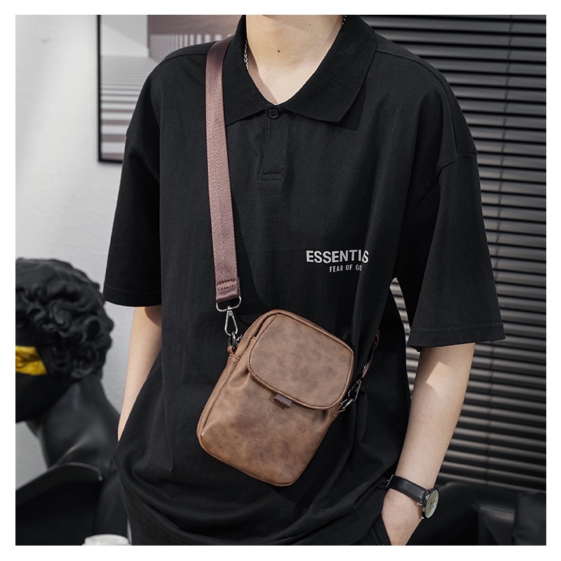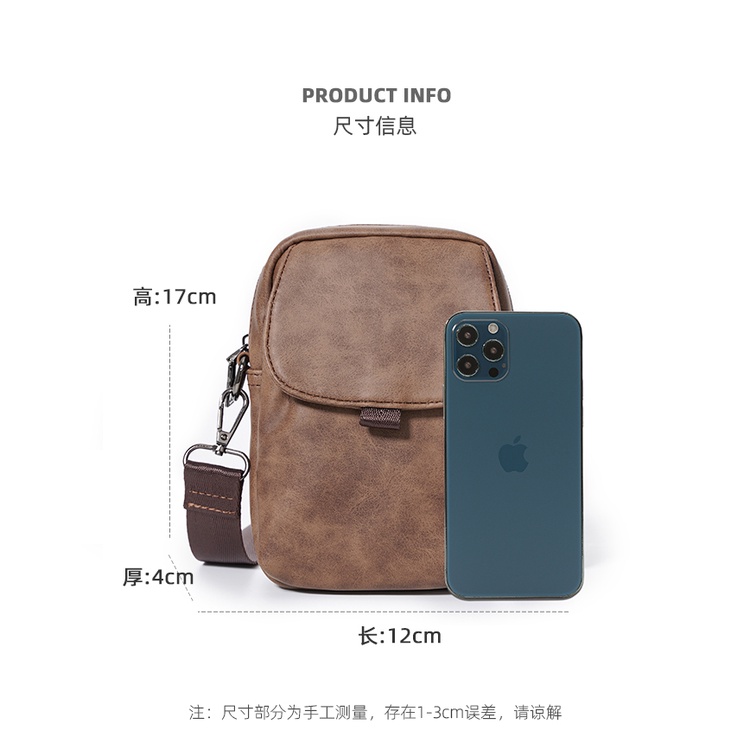 Small Leather Mens Crossbody Bag, Man Shoulder Messenger Bag Handbag Travel for Work Business