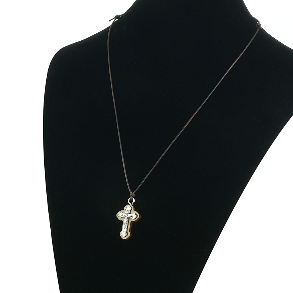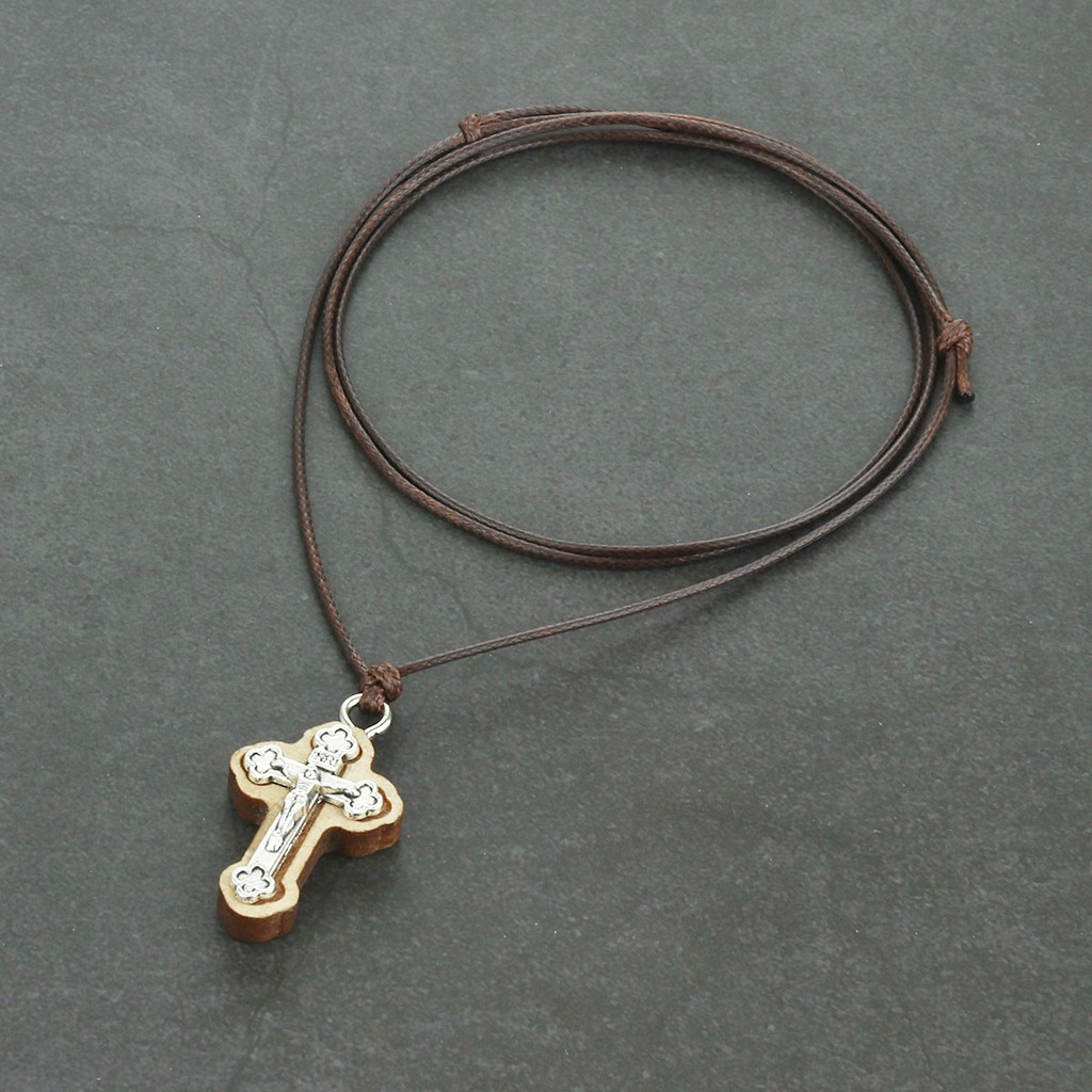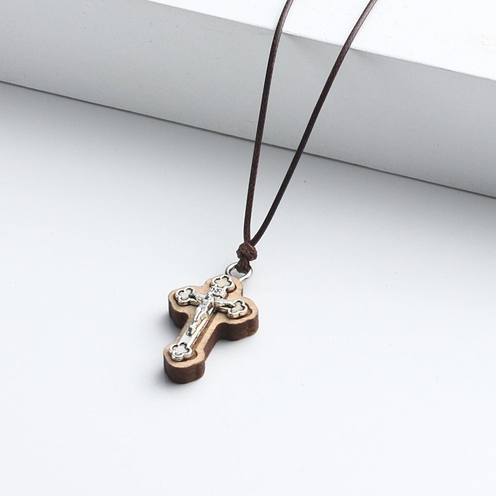 Small Wood Cross Latin Catholic Crucifix Jesus Pendant Necklaces