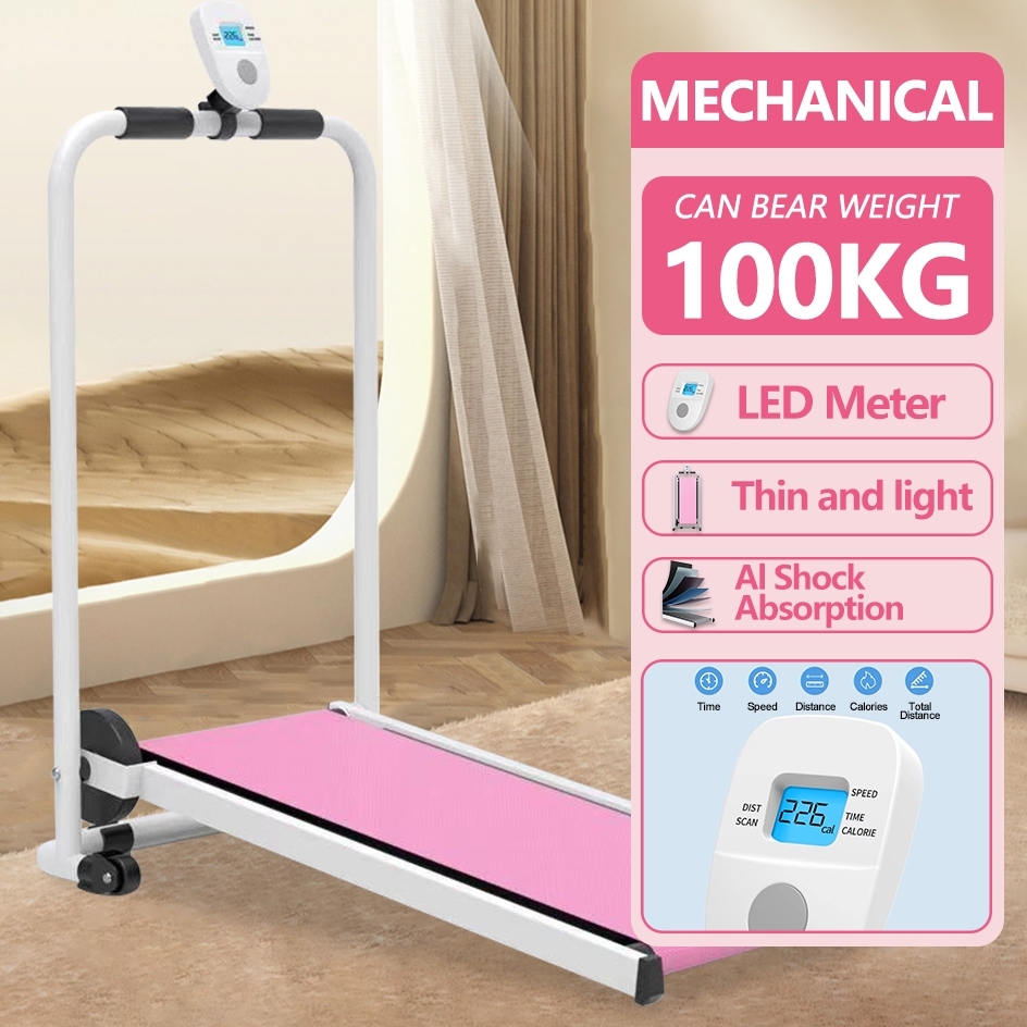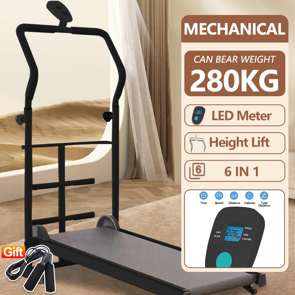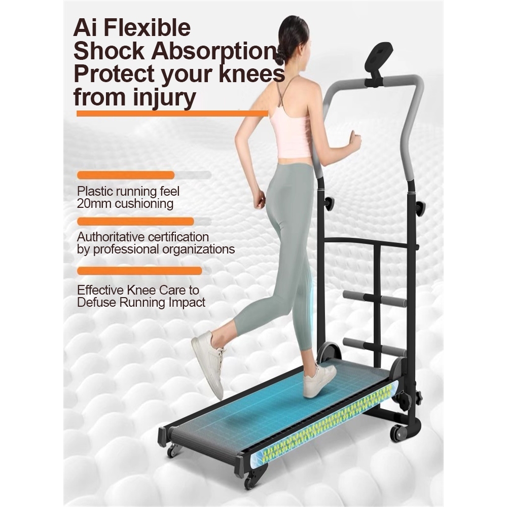 Small portable folding silent flat treadmill for home use height lift mechanical treadmill