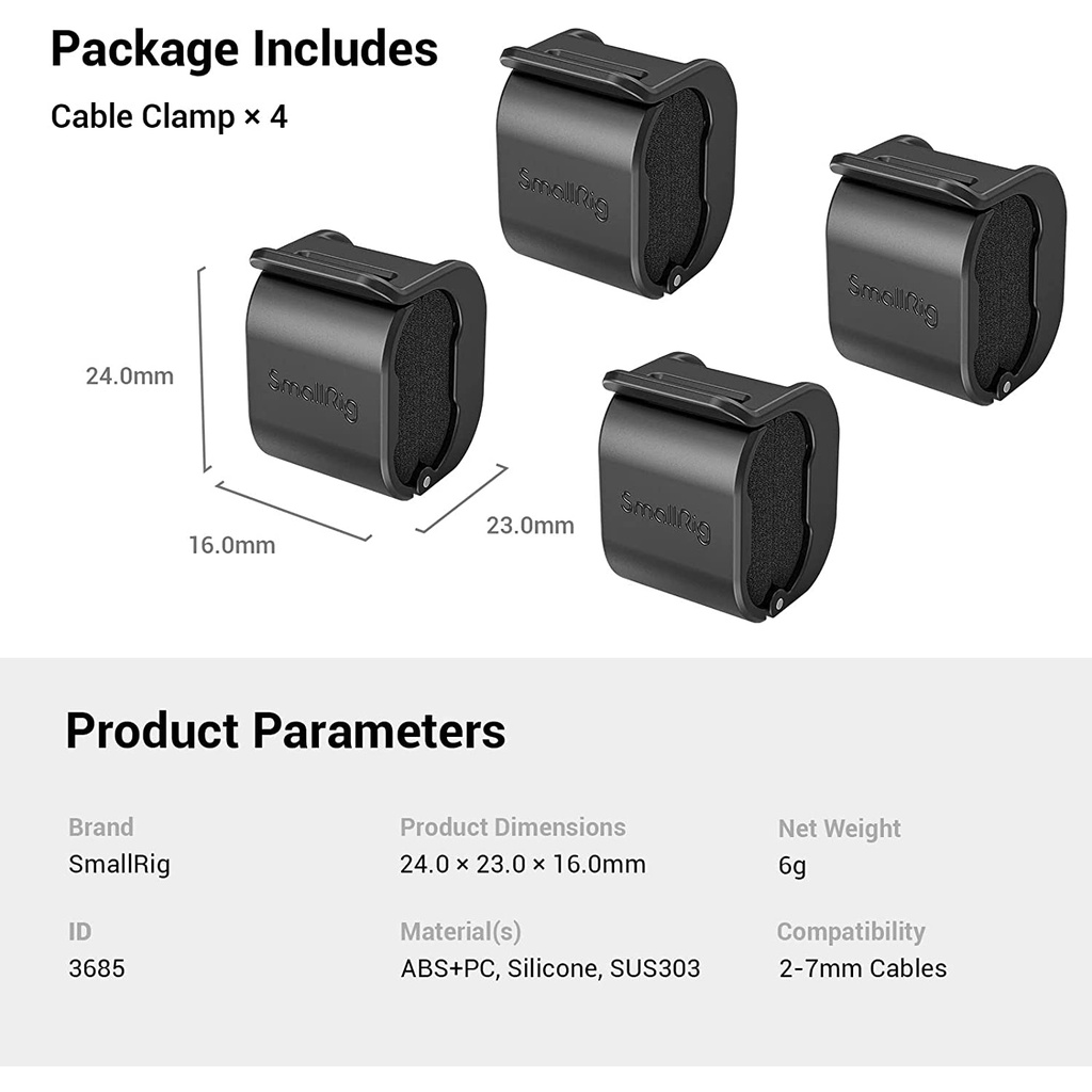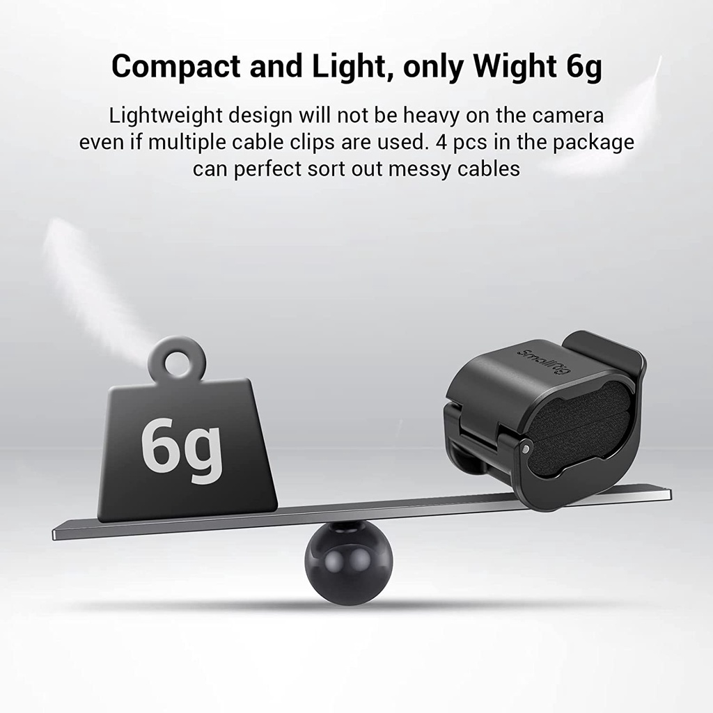 SmallRig Camera Cable Clamp (4 pcs) for HDMI / SDI / Microphone Cable DSLR Camera Cable Lock Mount Support 2-7mm Cable - 3685