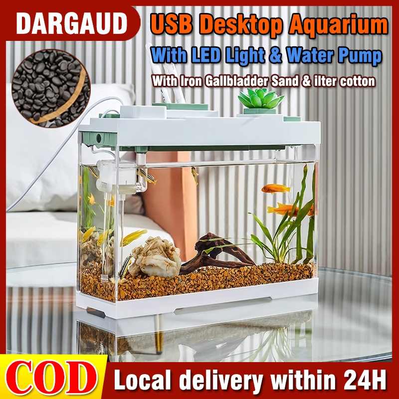 Smart Aquarium kit 1.5 Gallon Betta Fish Tank self Cleaning , with Filter LED Light, Water Pump