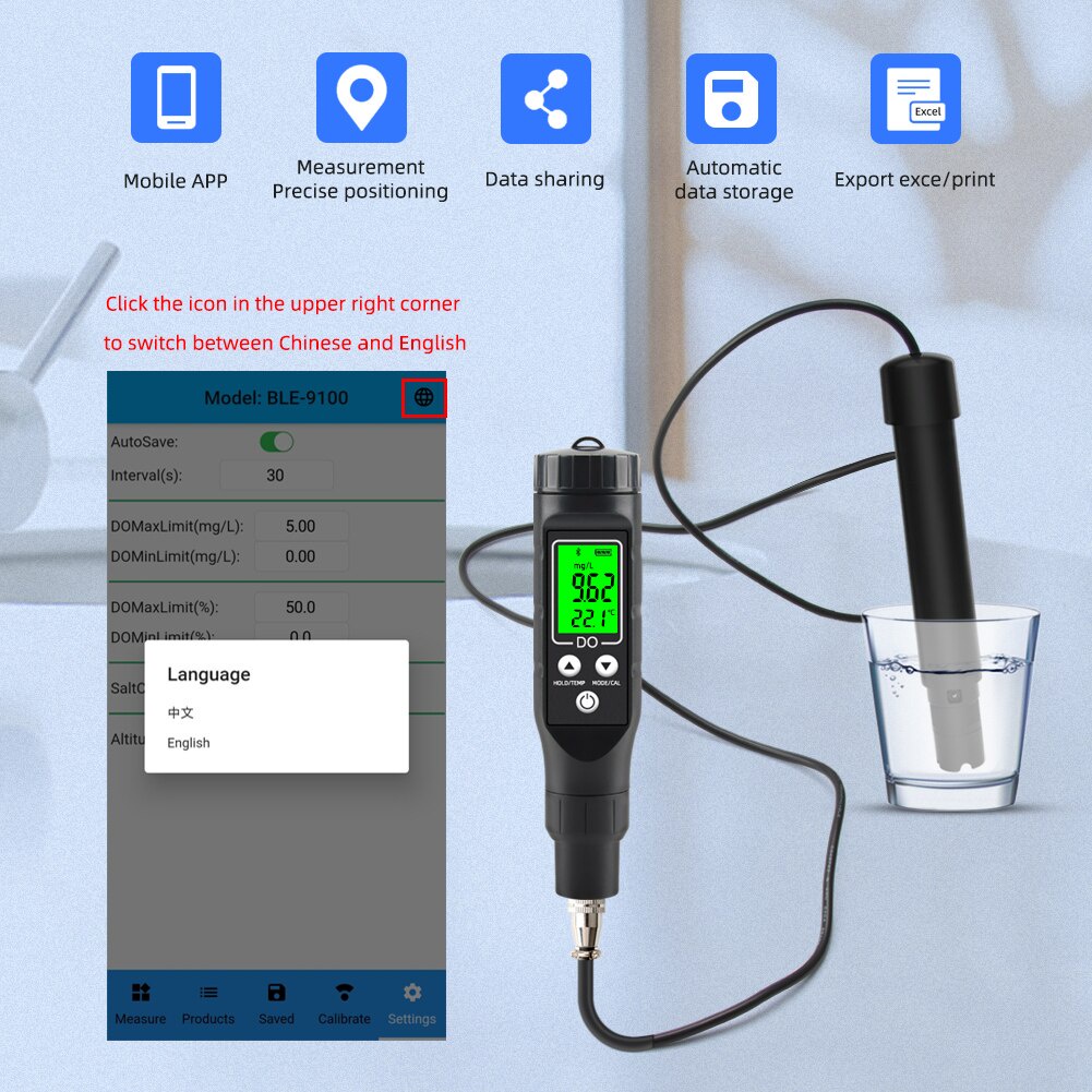 Smart Bluetooth Water Tester Dissolved Oxygen Meter 0.0-30.0Mg/L Digital Online Water Quality Meter, BLE-9100, Do Meter for Water
