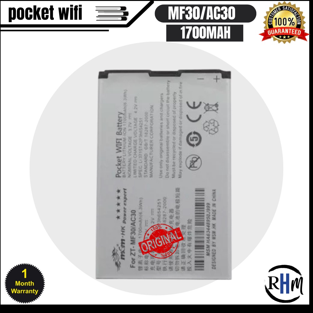 Smart Bro pocket WiFi 4G Model ZTE MF30, MF63, MF65, MF60, MF90, U230 AC30 Battery Original | Shopee