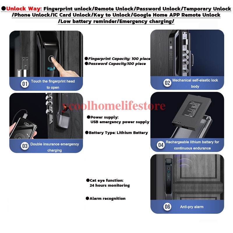 Smart Door Lock Fingerprint Lock Home Slide Password Lock With HD Camera Automatic Cat Eye Door Lock