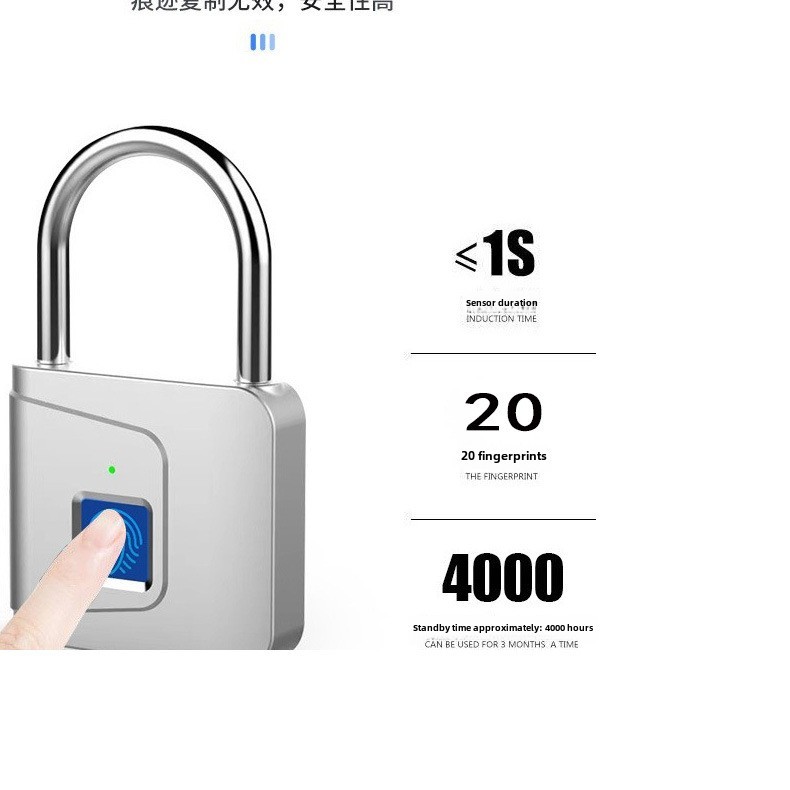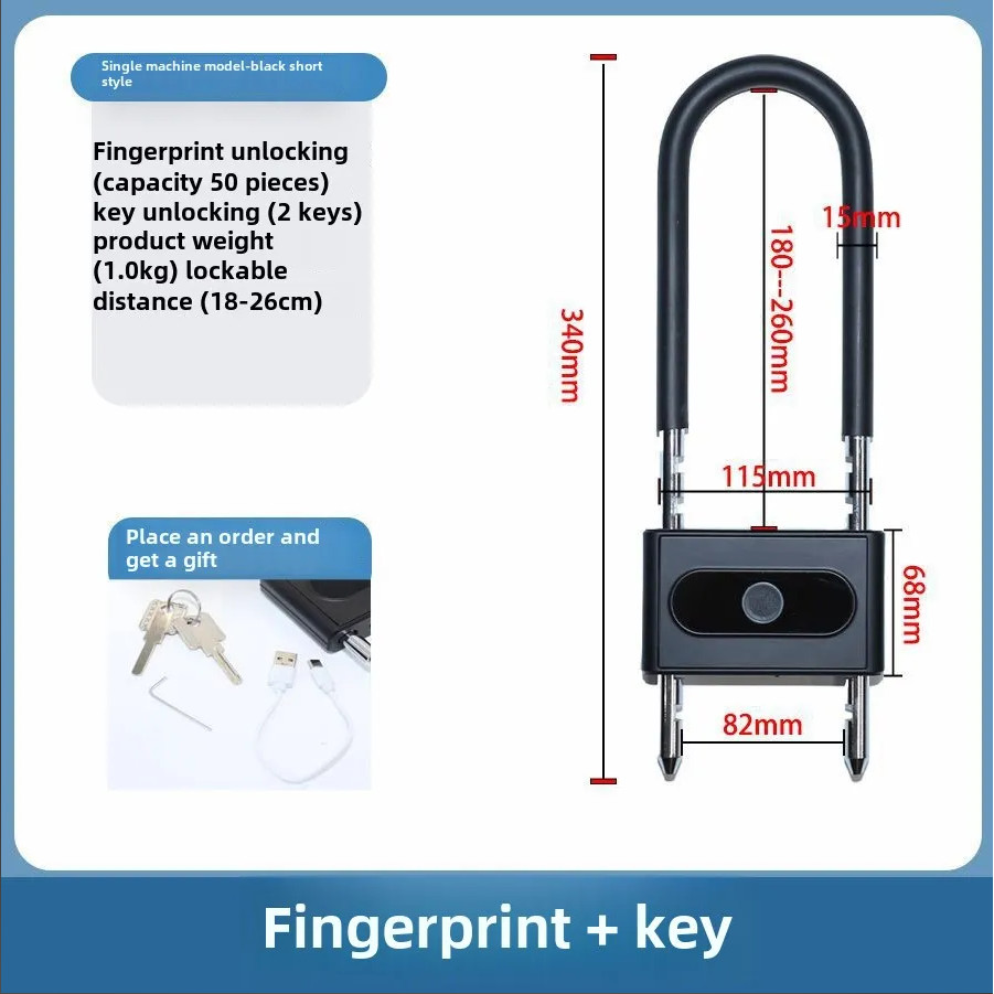 Smart Fingerprint Padlock U-Shaped Anti-Theft Lock Combination Lock Smart Fingerprint Padlock Household Student Dormitory Cabinet Anti-Theft Small Lock Gym E