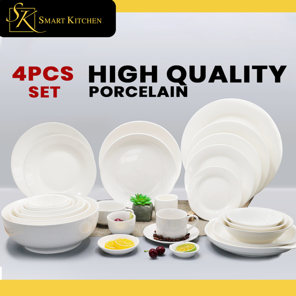 Smart Kitchen 4PCS Set High Quality Porcelain Plate/Dining Plate/Fruit plate/Soup Plate/Bowl/Tea cup