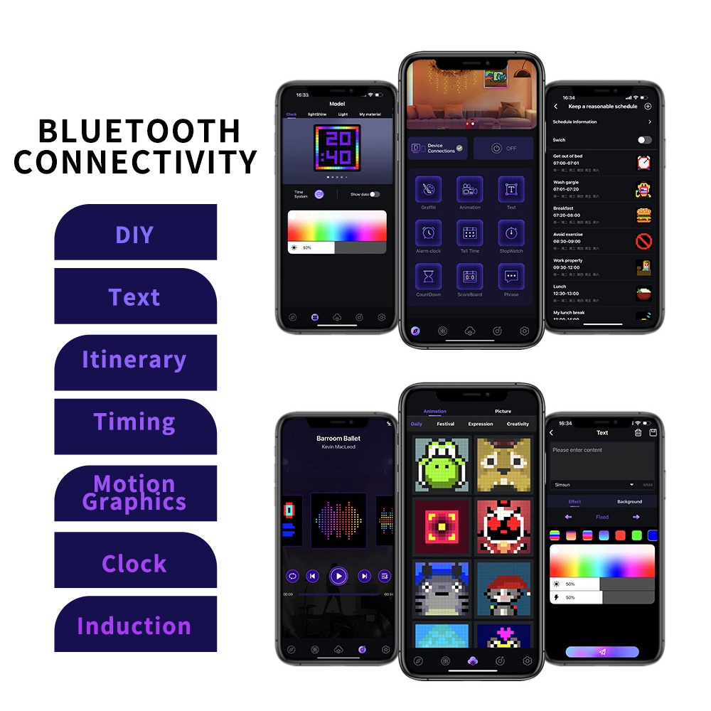 Smart LED Matrix Pixel Panel Lamp Bluetooth APP Control Panel DIY Graffiti Text Screen Car LED Display for Home Room Decoration DIY Programmable Led Screen Display