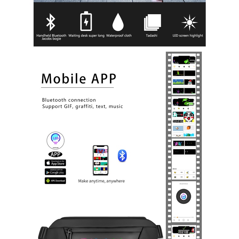 Smart Pixel LED Backpack Unisex Chest Bag Function Shoulder Bag Trendy Messenger Bag with LED Display Screen APP LED Fanny Bag