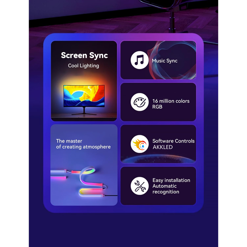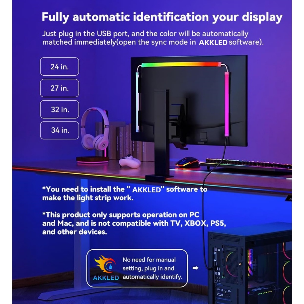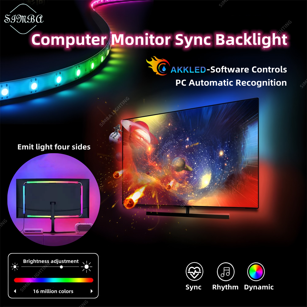 Smart RGB PC Sync Backlight Ambient PC Lighting Computer Monitor Sync Backlight PC Display Sync LED Strip Light RGB Dream Color DIY Party Game Holiday Atmosphere Decor Lamp
