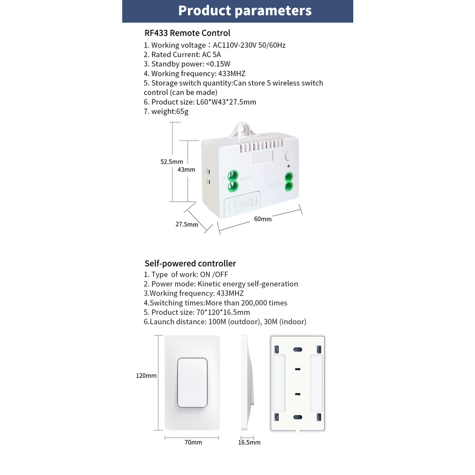 Smart switch Wireless Switch Waterproof Switch No need Battery No Wiring Quick Create or Relocate On/Off Switches for Lamps Fans