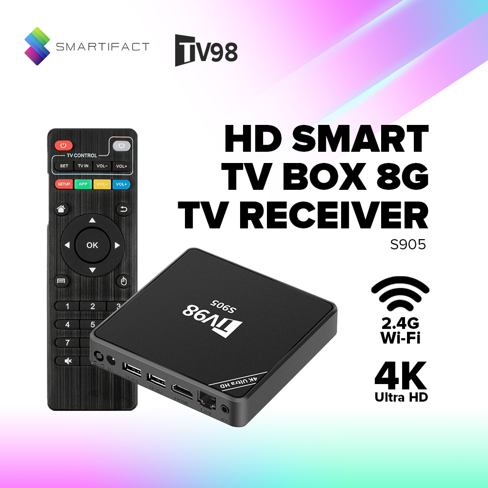 Smartifact TV98 S905 HD 4K Smart TV Box Support 2.4G Wi-Fi Android 12.1 8GB Quad Core Media Player