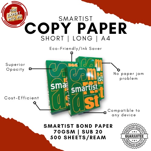 Smartist/ Unbranded Copy Paper / Bond Paper - Short / Long / A4 70GSM | 500 SHEETS QUALITY PER REAM