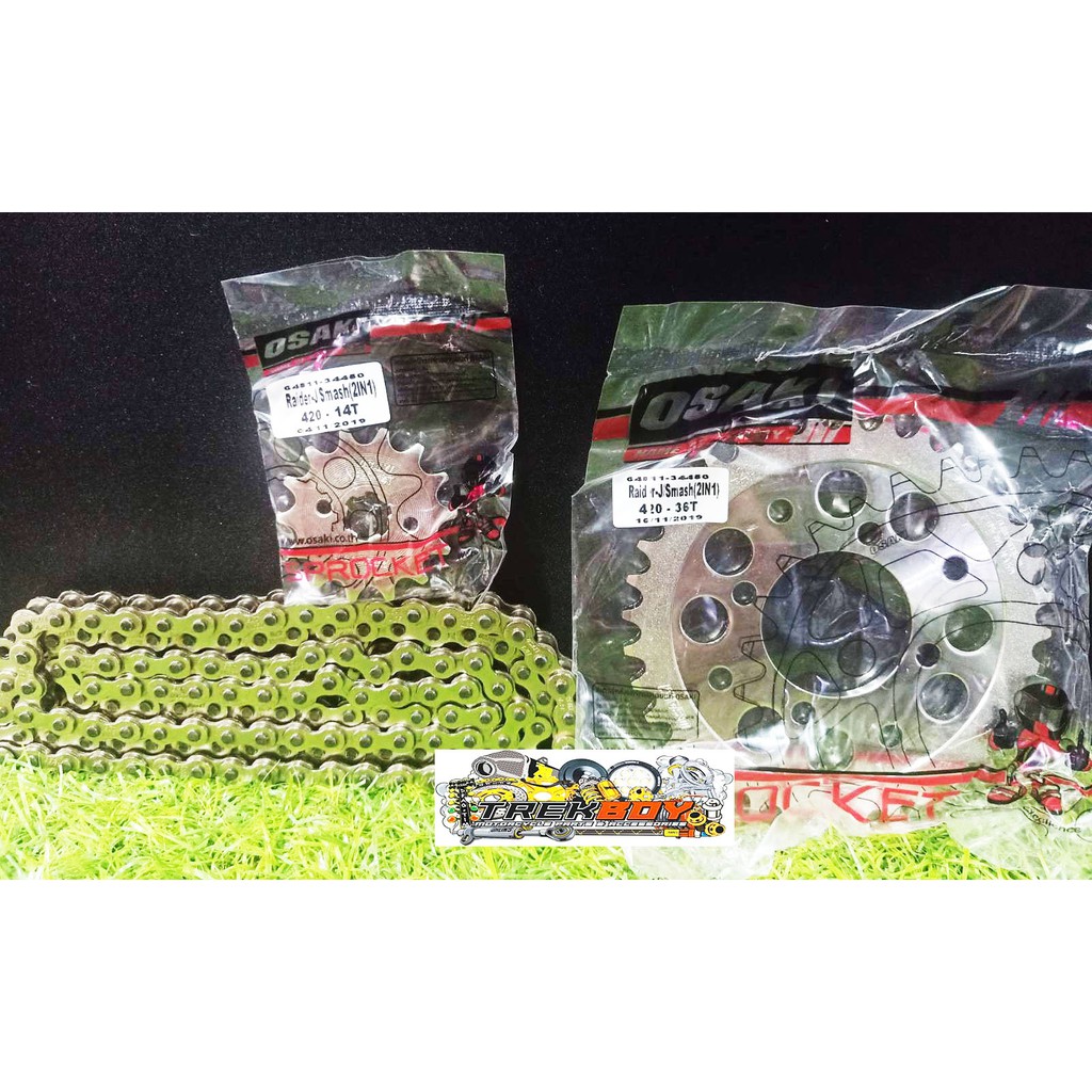 Smash, Raider-J 110/115 Fi, Shooter 115 Fi & Shogun 125 Pro Osaki Revo CHROME Sprocket-chain set
