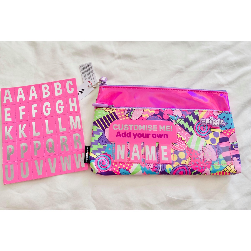 Smiggle ID Pencil Case, Personalised, Name Tag Pencil Case (Candyland, Unicorn)