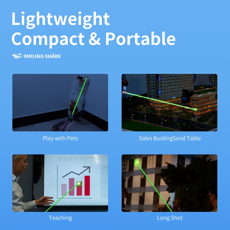 Smiling Shark 1955 Laser Pointer USB Rechargeable Super Long Range Laser mini Convenient Red, purple and green Lasers Daily, classroom, meeting, cat play