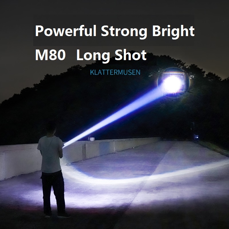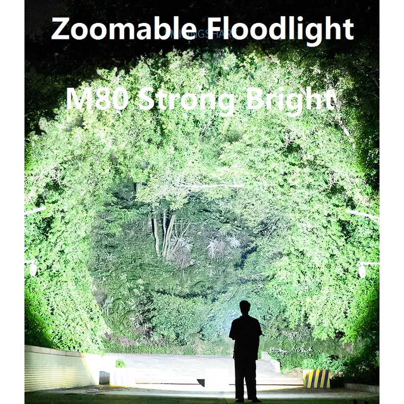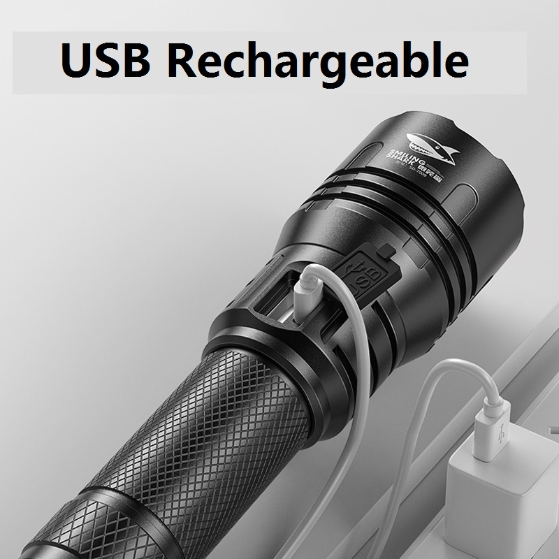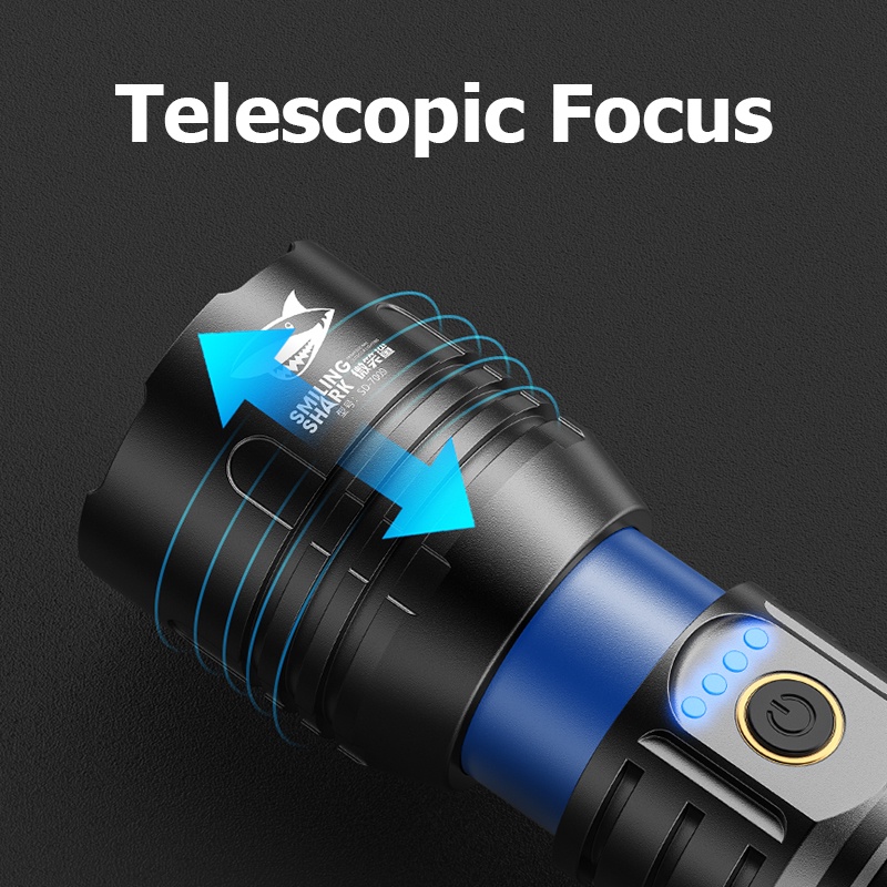 Smiling Shark Original Flashlight SD7008 Led M80 10000LM Powerful Light Torch Light 26650 Type-c Rechargeable Long Shot 1000M 3modes Zoomable Waterproof Power Bank Flash Light Outdoor Hiking Fishing Torchlight