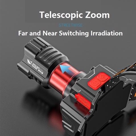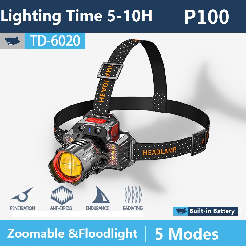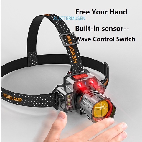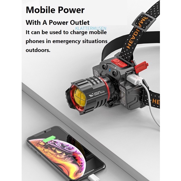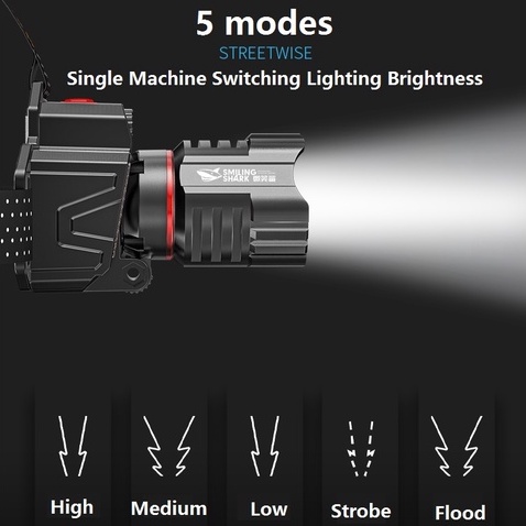 Smiling Shark Original Headlamp Led Headlight Xhp100 Fishing Usb Rechargeable Zoomable Floodlight Sensor Waterproof Power Band 45W 7000 Lumens Strong Light Super Bright Head Torch Flashlight Outdoor Hiking Boating Emergency Survival Lighting