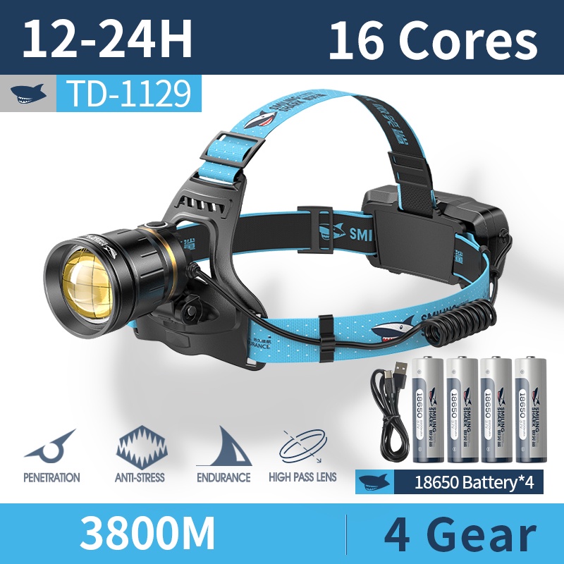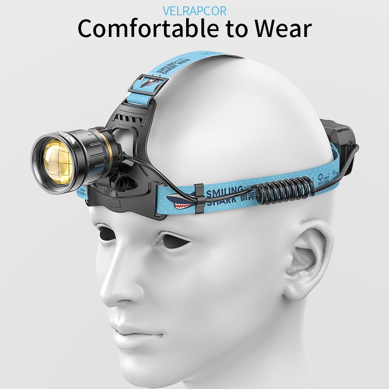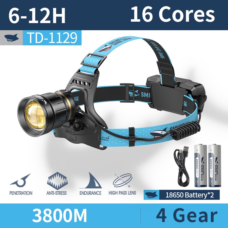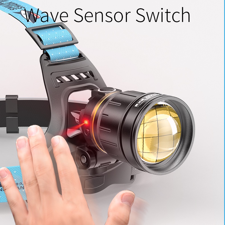 Smiling Shark Original Headlight Led Xhp160 Powerful Headlamp Super Bright USB Rechargeable Zoomable Sensor Head Lamp 18650 Battery Waterproof Head Flashlight Outdoor Camping Fishing Hiking Hunting Work Light Patrol Repairing Emergency Lighting