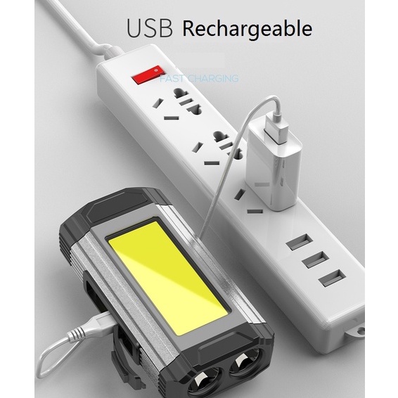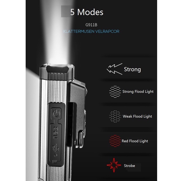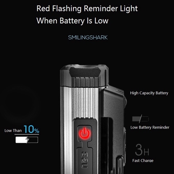 Smiling Shark Original Work Light COB Flash Light Rechargeable Portable Ultra Bright Working Light Waterproof Tail Magnet With Clip Hook Red Strobe Power Outage Emergency Outdoor Car Repairing Lighting