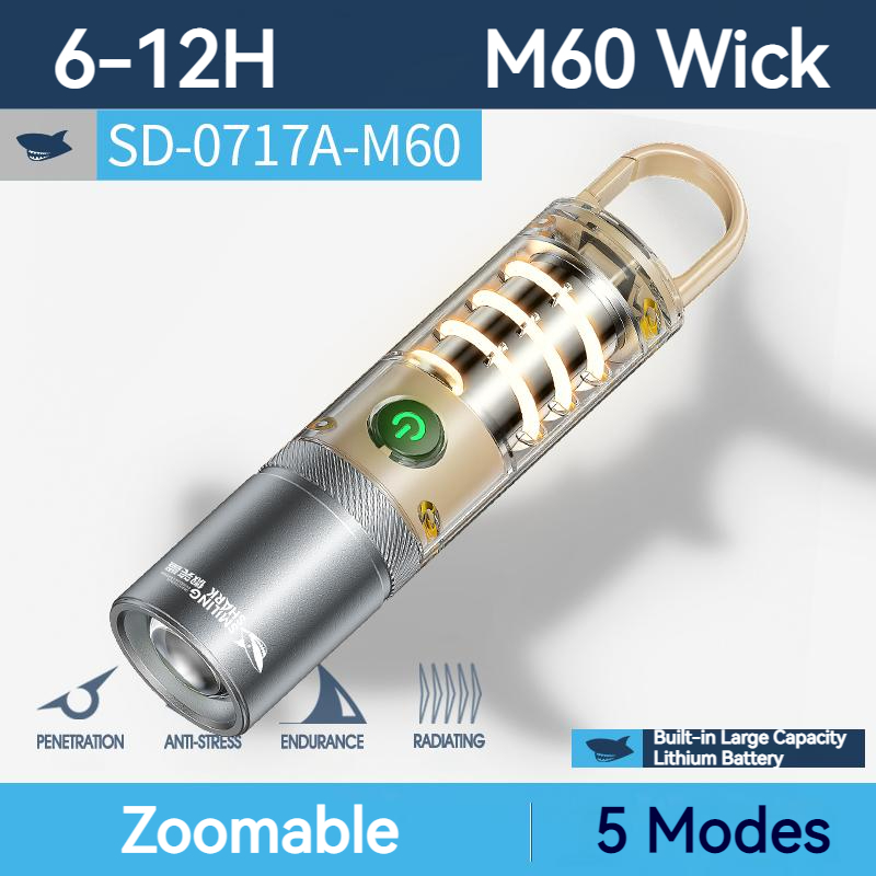 Smiling Shark SD0717 Keychain Light Flashlight Super Bright M60 6000 Lumens Portable Torch Light with Hook USB Rechargeable Waterproof Outdoor Camping Hiking Emergency Lighting