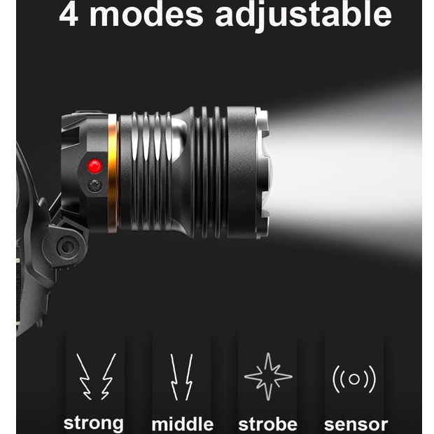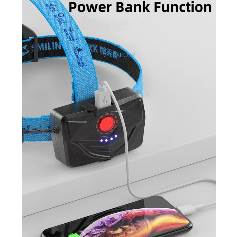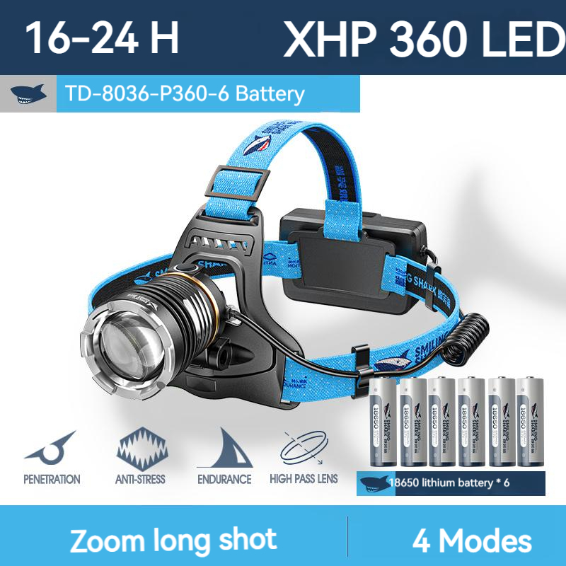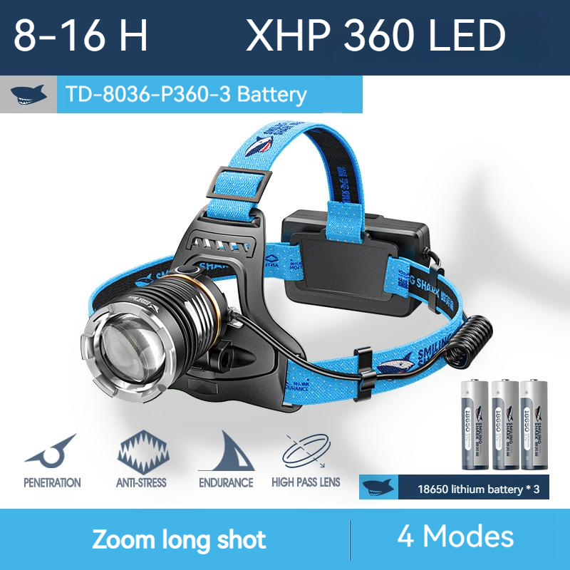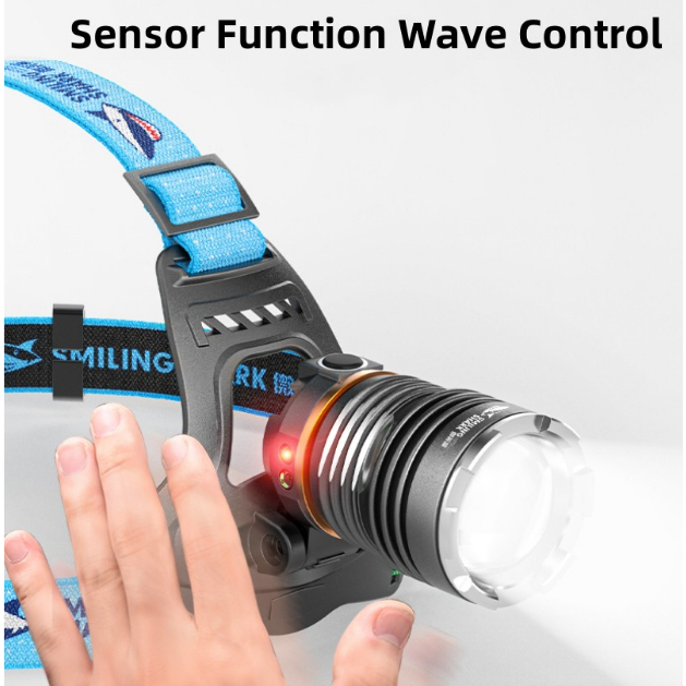 Smiling Shark Super Bright Headlight P360 High Power Headlamp 26650 USB Rechargeable Waterproo Zoom Sensor Head Flashlight Outdoors Emergency Camping Fishing Cycling Work Lighting Head Light