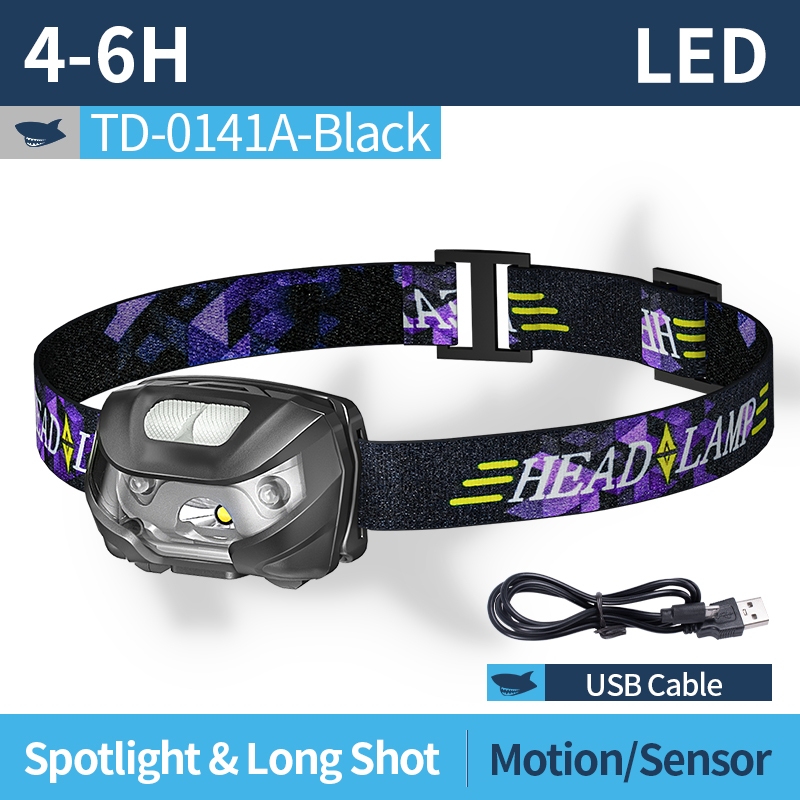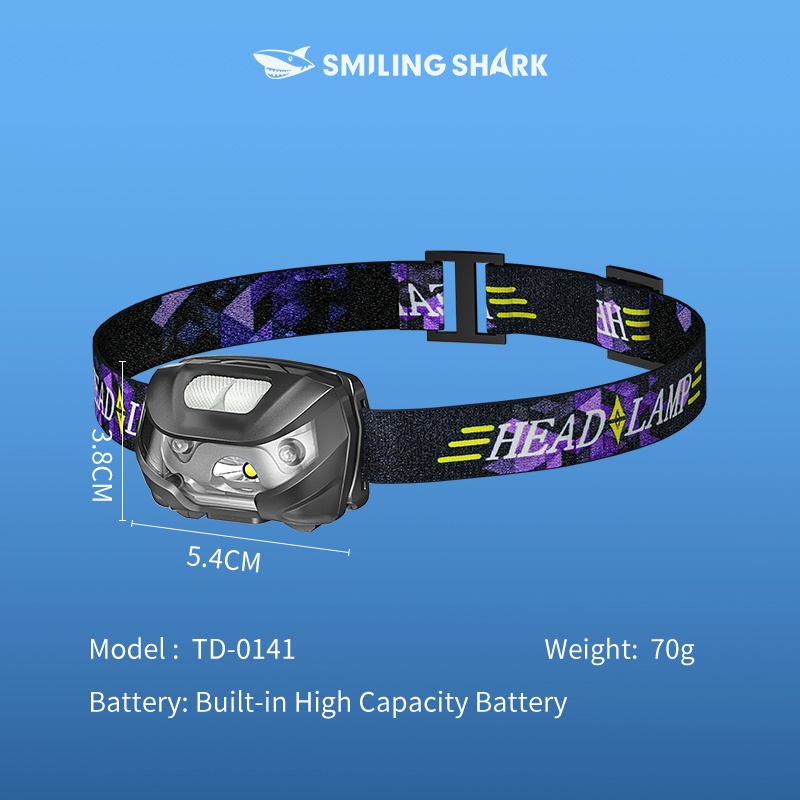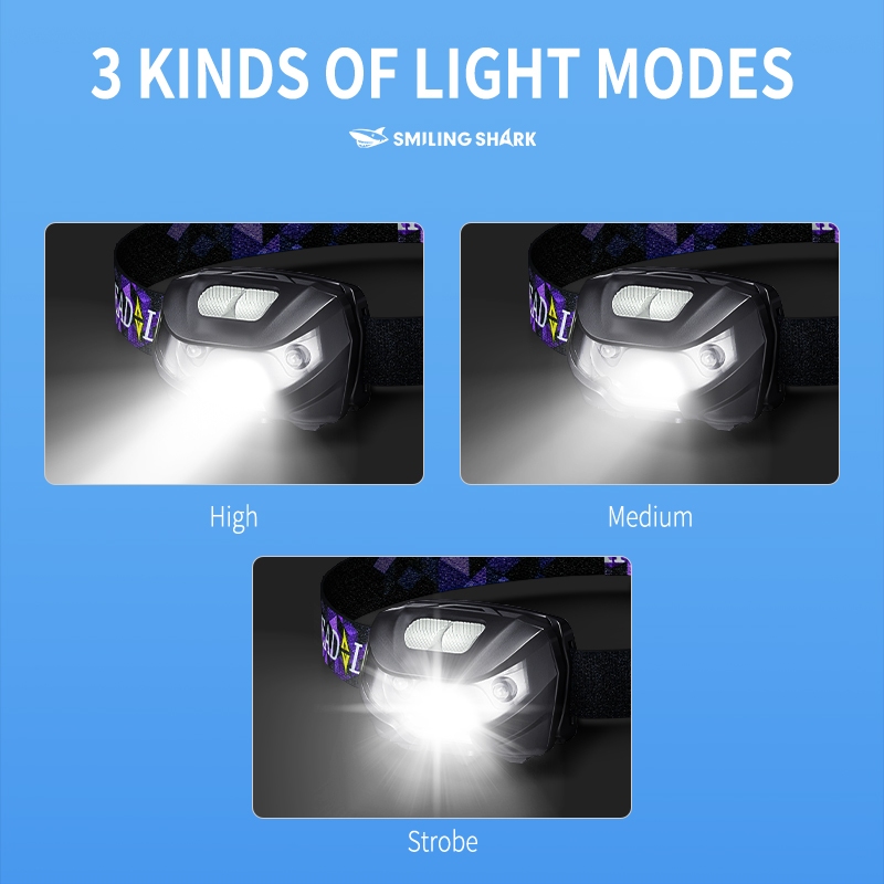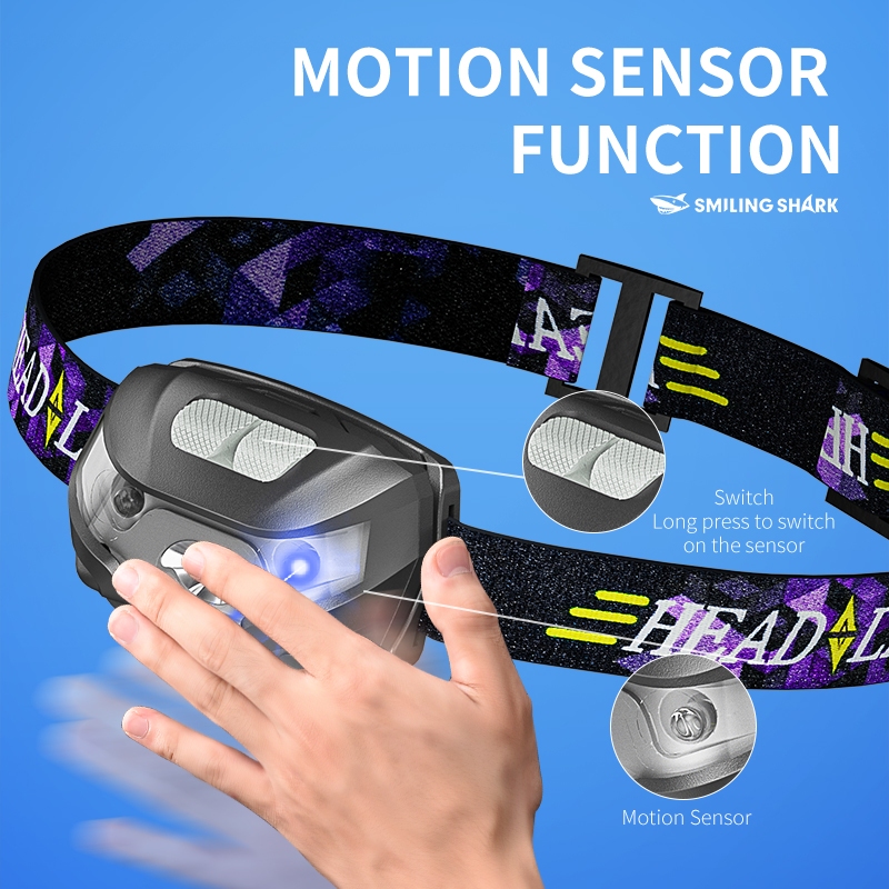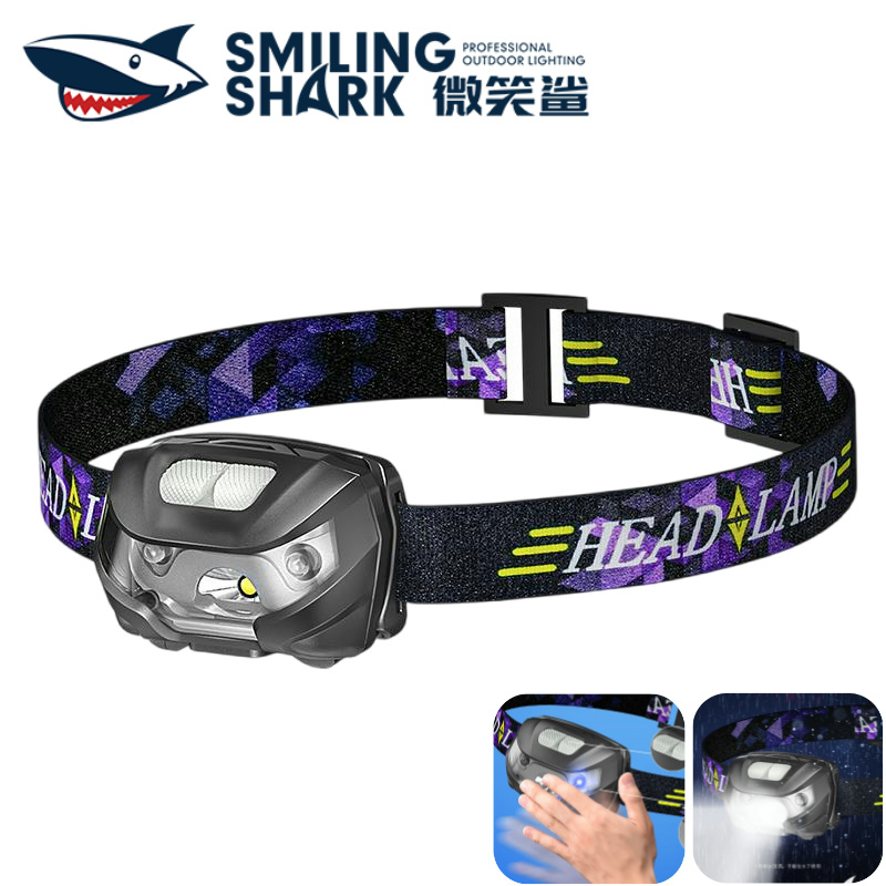 SMILING SHARK Rechargeable Headlight Sensor Headlamp Led Super Bright Head Light 3Mode Ooutdoor Lightweight Waterproof TD0141