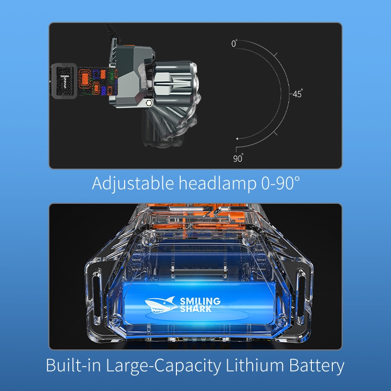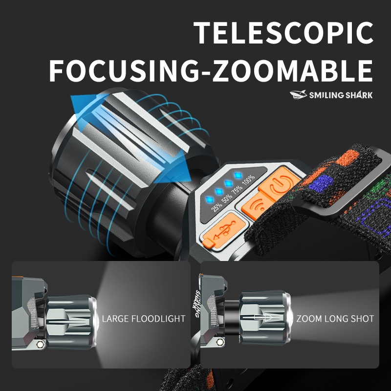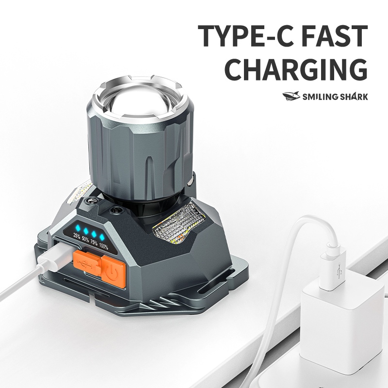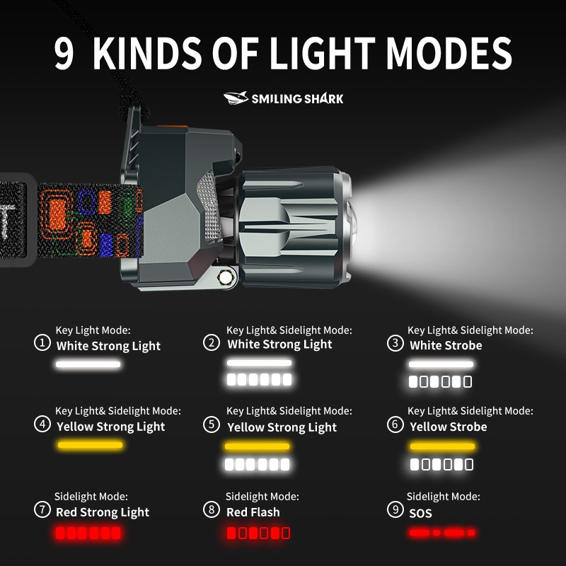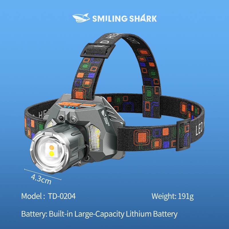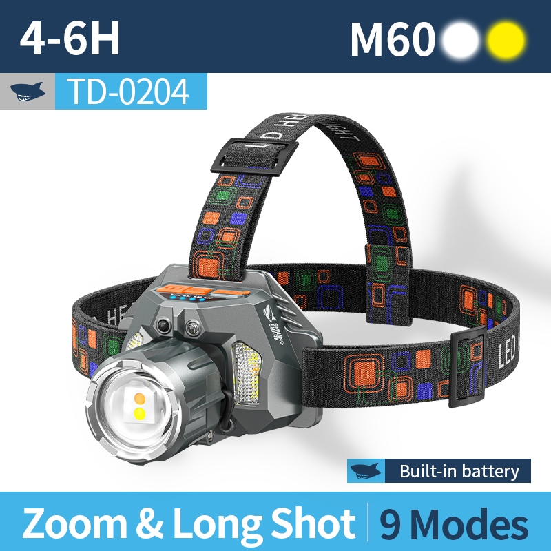 Smiling shark TD0204 LED Headlight M60 Super Bright 6000LM Inductive Head Lamp 9Mode Type-c Rechargeable Work Light White Red Yellow Light Outdoor Camping fishing