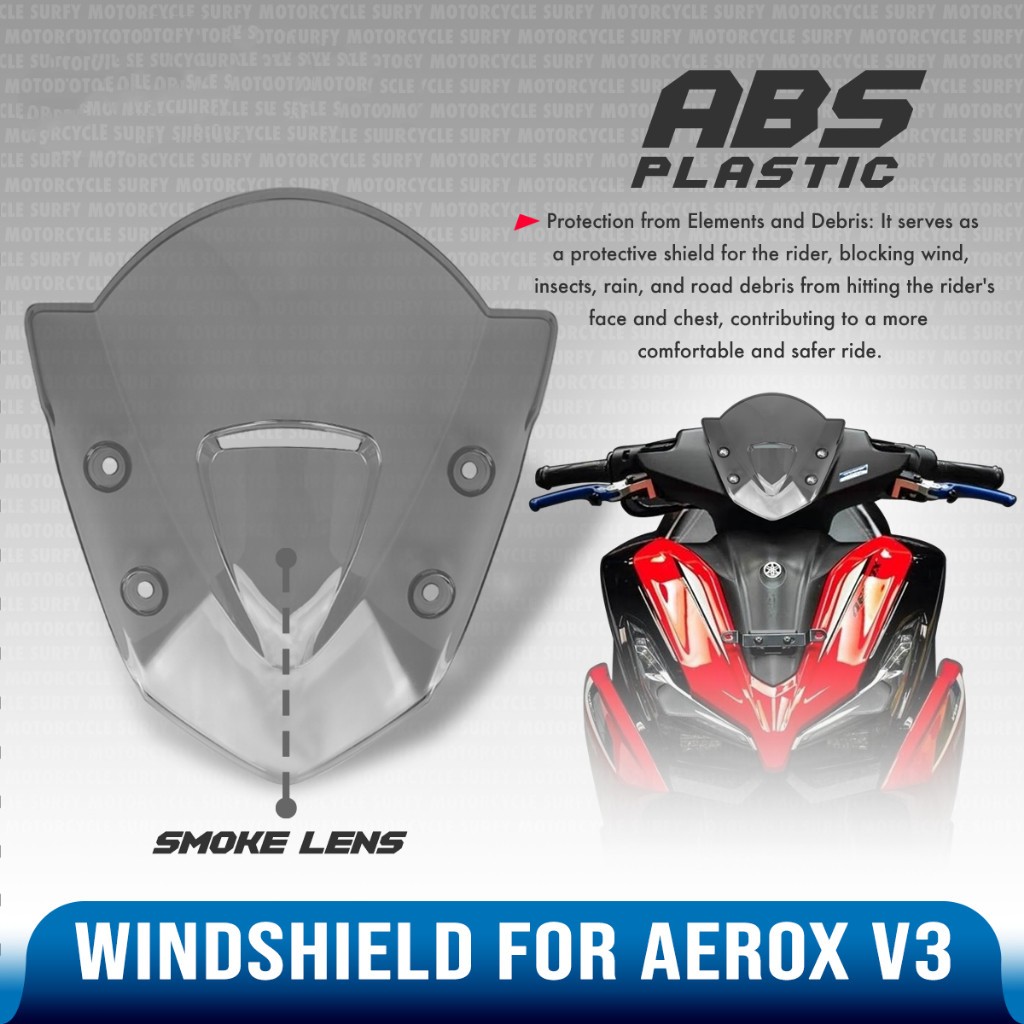 Smoke Color Aerox V3 Windshield Visor Durable ABS Plastic Airflow Design Benefits Of Shape