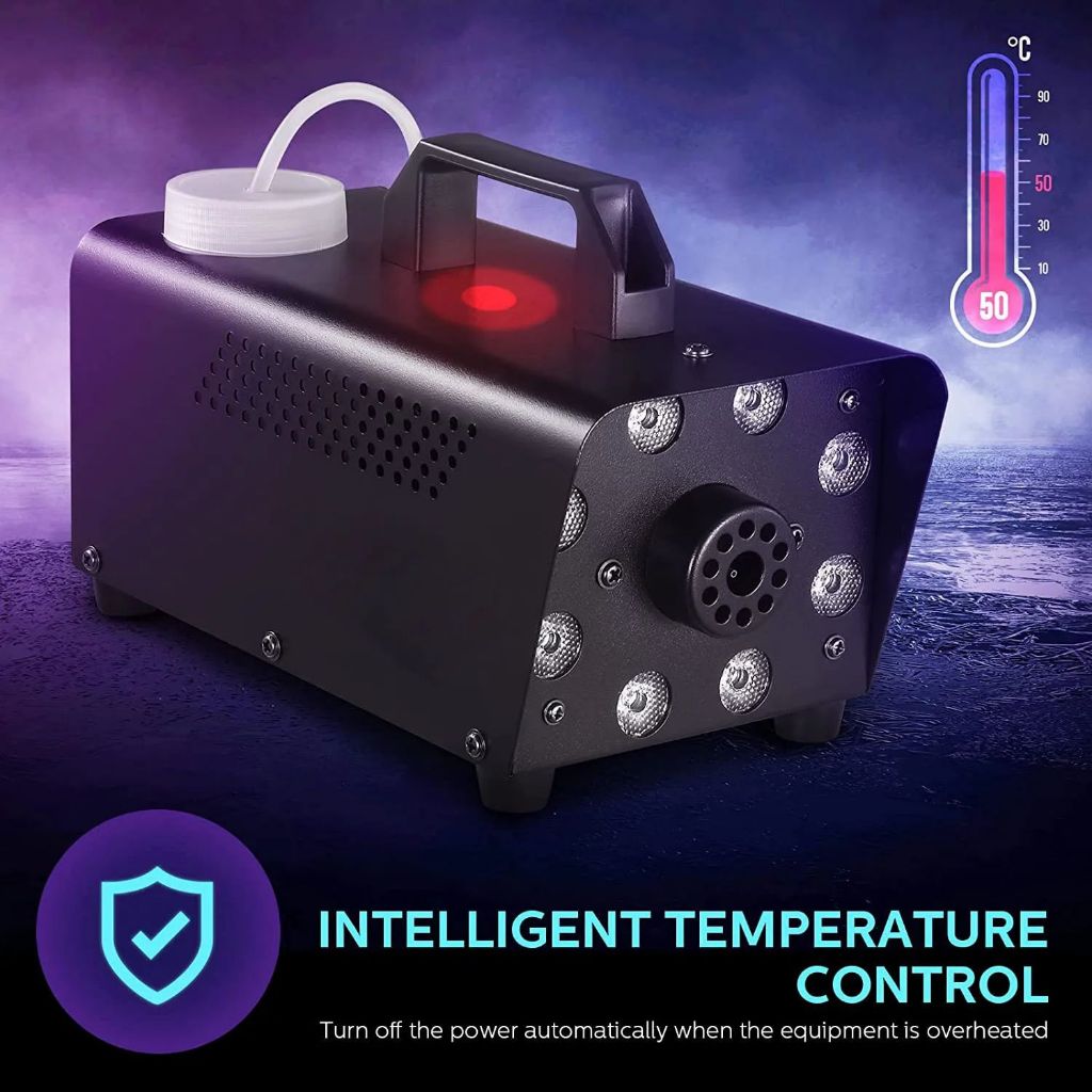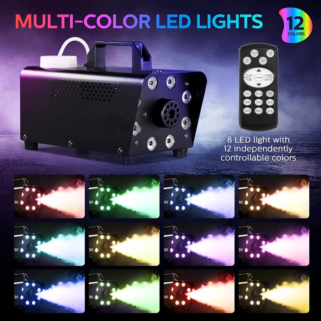 Smoke Machine Fog Machine with 12 Colorful LED Lights Effect 500W and 2000CFM Fog for Wedding Stage