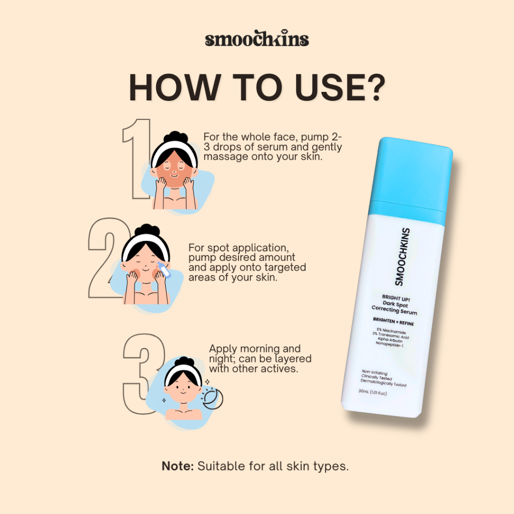 Smoochkins Bright Up! Dark Spot Correcting Serum 5% Niacinamide 3% Tranexamic Acid Alpha Arbutin