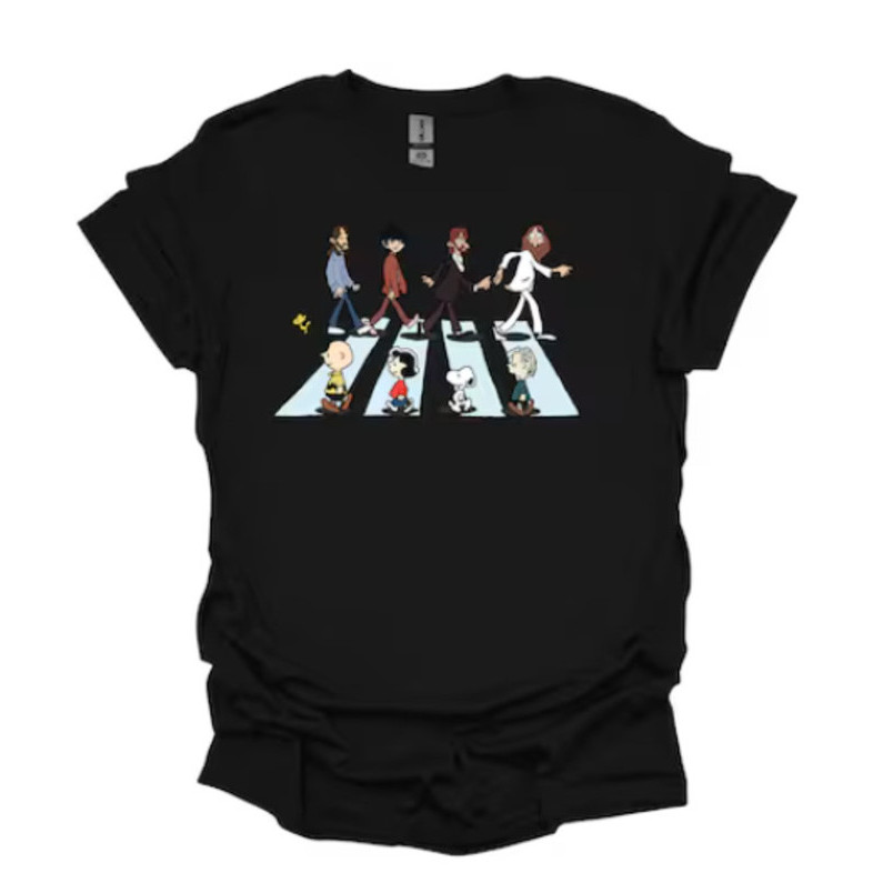 Snoopy Rock Friends The Beatles Abbey Road Peanuts Music Mashup Black TShirt