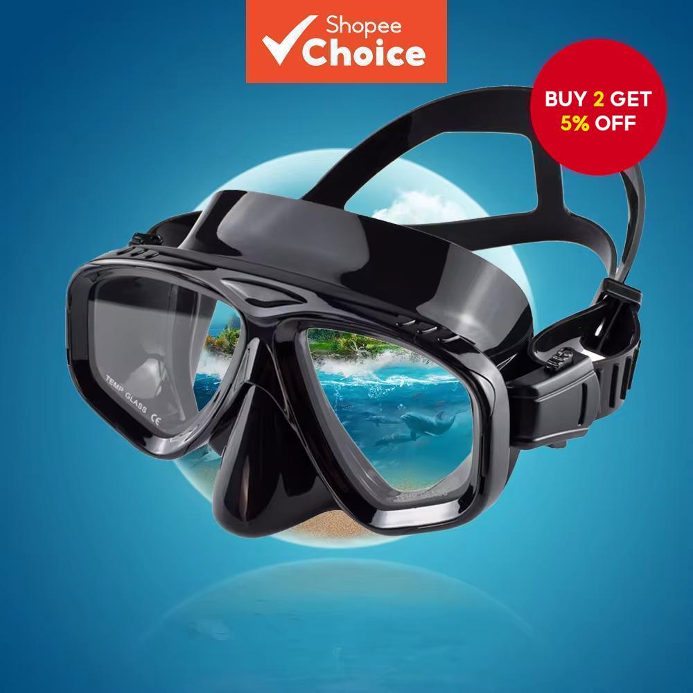 Snorkel Mask Swimming Goggles Scuba Diving Silicone Skirt Tempered Glass Len Wide View Training With Nose Cover Adjustable Strap