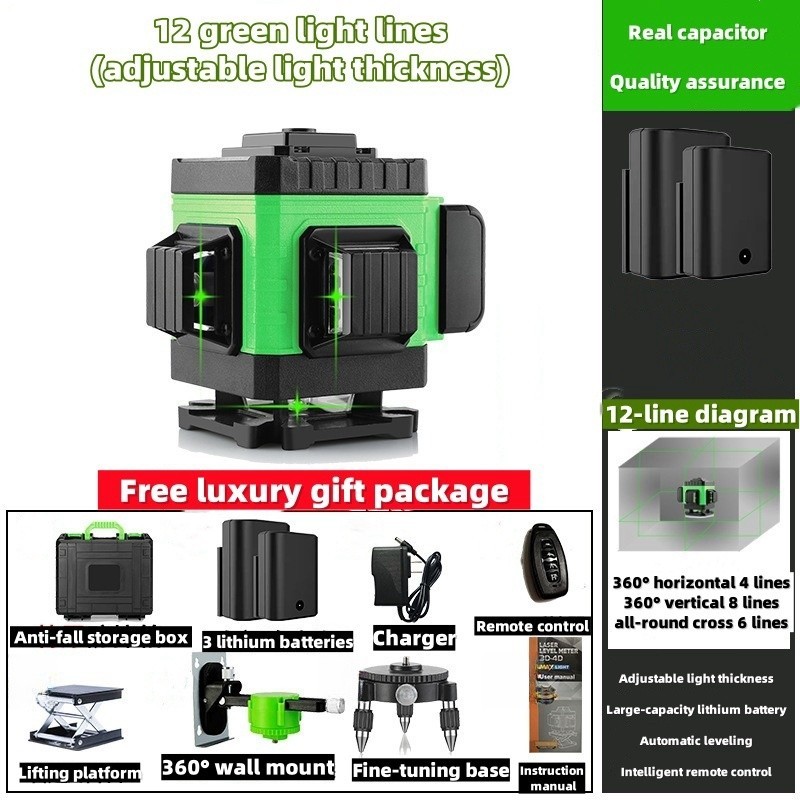 SOARFLY 12 /16 Lines Adjustable Laser Level 360 Degree Rotating Cross Automatic Measurement Self-Leveling with Digital Display