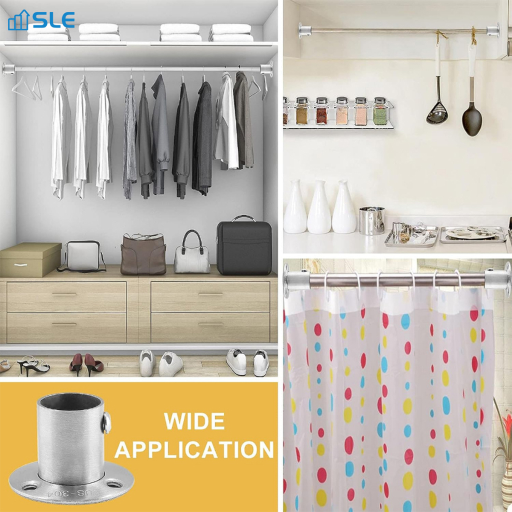 Socket Flange Wall Mount Pipe Bracket Round Tube Pipe Flange Curtain Rod Holder Wardrobe Clothes