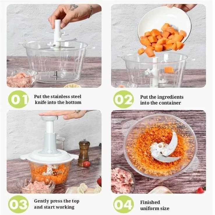 TS Manual Food Chopper Blender for Meat Garlic Vegetable Fruits Hand-Powered Food Chopper